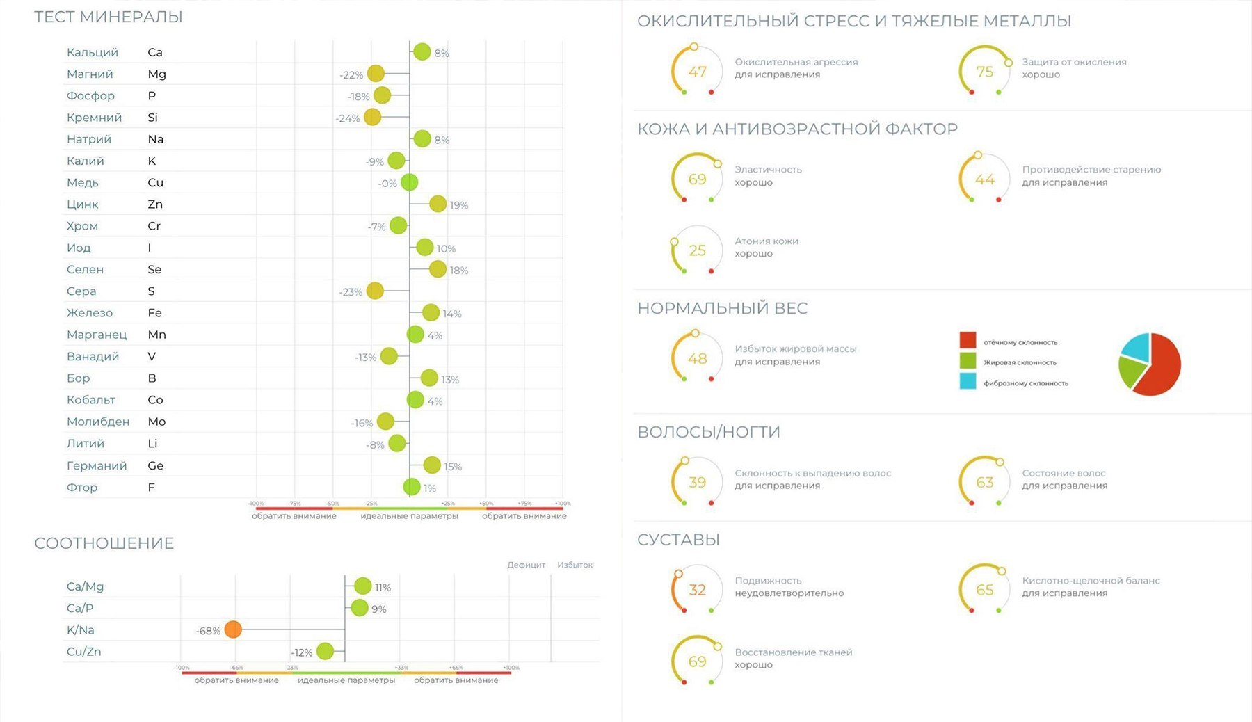 Аппарат используется в превентивной и эстетической медицине, чтобы выявить скрытые дефициты, которые влияют на кожу, энергию и общее самочувствие. На основе результатов врач может подобрать персональную программу: витамины, капельницы, нутрицевтики и anti-age терапию.